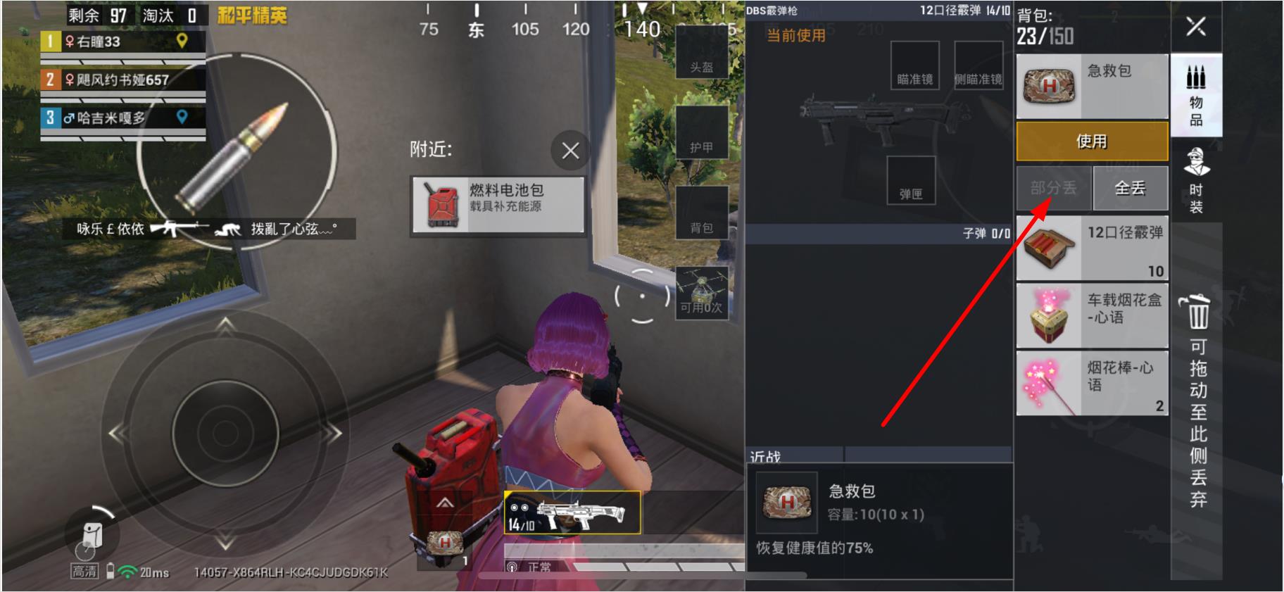 3、点击部分丢选项,然后选择或输入想要丢弃的物品数量,即可丢弃一定数量的物品。
