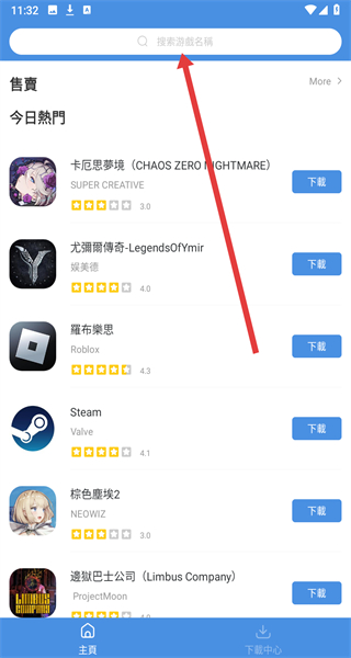 1、直接在搜索框中输入关键字就可以直接搜索,保证我们能够找到各种手游、大型网游;