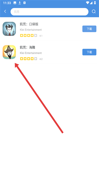 3、在搜索结果中找到“飢荒:海難”,点击进入游戏详情页。