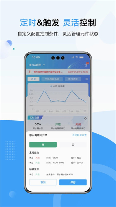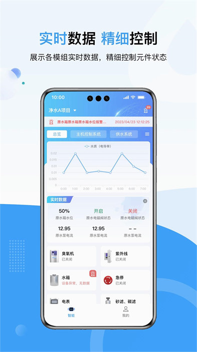 2、通过实时的数据采集,系统可以精准的呈现净水设备的运行的具体的状态哦;