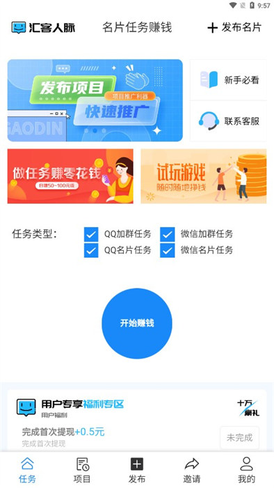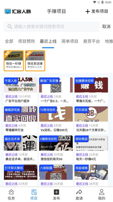 汇客人脉是一款连接网络的赚取收益的应用软件,通过这款软件用户可以随时随地的进行赚取自己想要赚取的收益,提供了十分丰富的赚钱项目,用户可以随时轻松地进行收益赚取,是一款广受用户们欢迎的十分好用的实用工具。