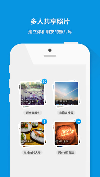 大象册电脑版是一款优秀的免费照片共享存储工具,你可以在这里对自己的照片进行共享和交换,告别数据线和繁琐的导出导入方式,并且所有照片还能一键分享到短信、微博、微信,以及将别人的照片下载保存到自己的手机里。无论是派对、生日、婚礼、旅游,或者其他聚会,“大象册” 都是收藏和共享照片的最好选择。