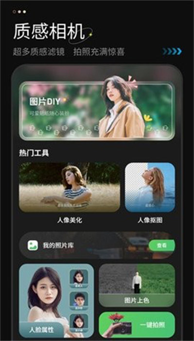 1、智能人像美容的功能,一键直接修饰自己的肌肤,打造了完美的自拍的照片;