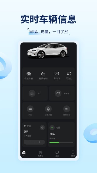 tsl钥匙软件是一个可以远程控制新能源车辆的工具,利用该工具与车辆进行连接后将会看到各种有关车辆的参数信息,在车上更是会带来各种所需要的功能使用,帮助用户们快速的查看车辆的电量情况,也可以支持远程的操控设置,帮助特斯拉车主们带来一个更加智能、全面的车辆智能控制的软件,同时还能实现钥匙共享各位给家人或者好友,方便各位能够更快的对于车辆进行远程操控使用。