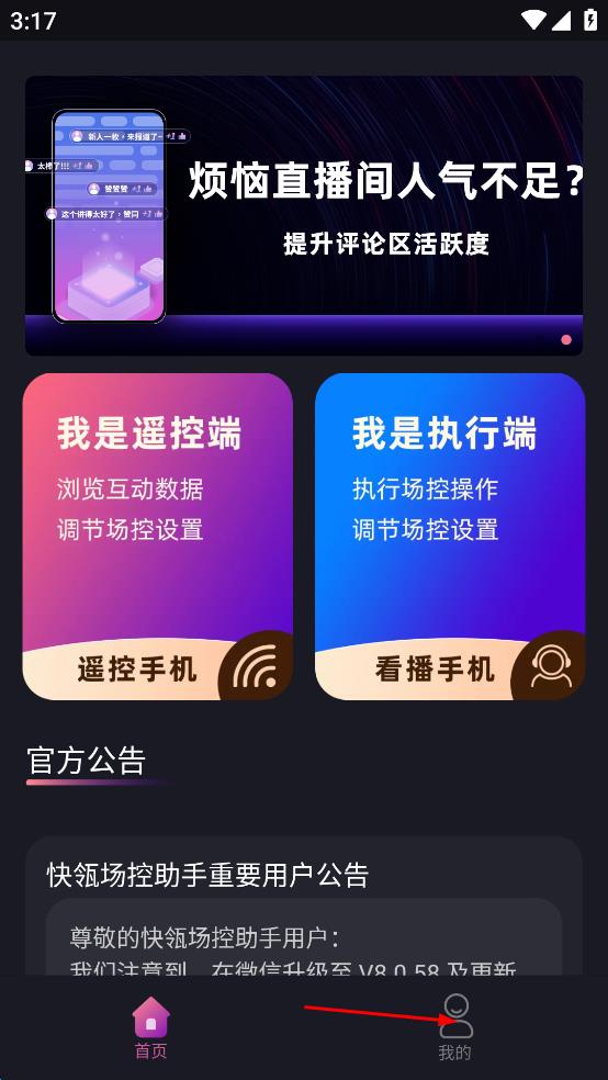 1、打开快瓴场控助手APP,点击首页右下角我的。
