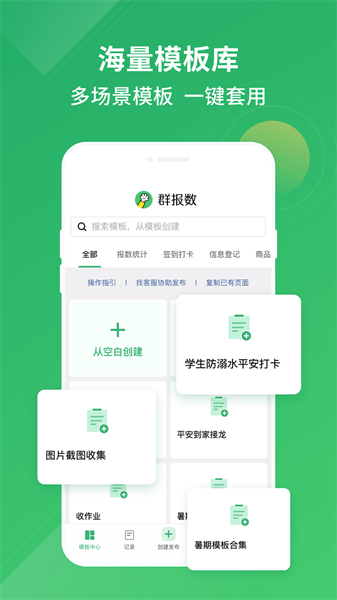 群报数软件是一款能够帮助统计群内项目的好工具,平台专门带来了大量的模版,让用户能够在不同场合下都能使用,并且还能给出一些数据分析,以便让大家都能了解到数据的情况,并且还可以自定义整理的项目,轻松帮助大家掌握统计的细节,如果你日常有统计的需要一定要来小编这里下载软件!