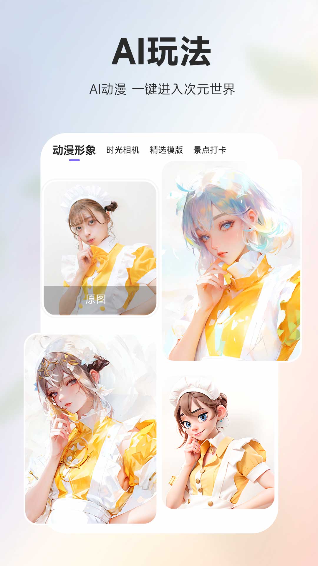 ③、时光相机,轻松就能通过拍摄将人物变老或者变年轻,十分的有趣;