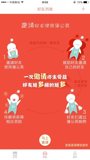 邀请好友使用蒲公英,Ta 赚钱,你就跟着赚~