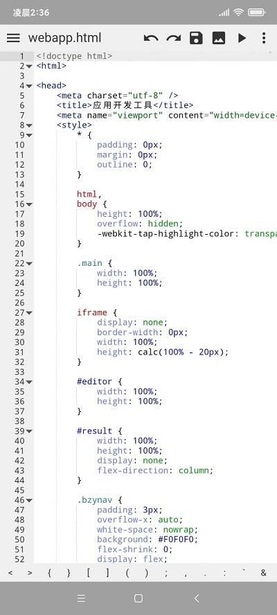 webapp开发工具是一款能进行app开发的应用工具,利用该工具可以实现手机上撰写各种编写代码功能,同时内置各种端口的接入让编写代码公式更加的轻松,相关工作人员利用该工具能够大大提高自己的办公工作的效率,为用户们带来一个c++多款语言的开发,同时能欧自动生成加密HTML和JS代码,为各位在开放安卓app提供了更多实用且专业的工具,方便大家可以利用手机随时进行编写。