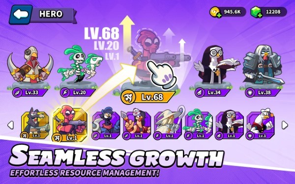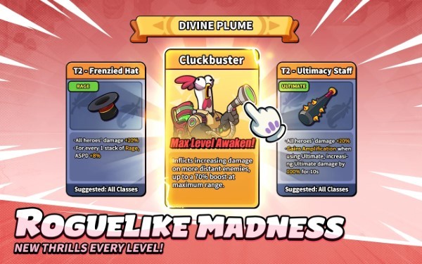 1、每一只鸡都会有专属的技能进行攻击,升级等级和技能获得更加强大战力;