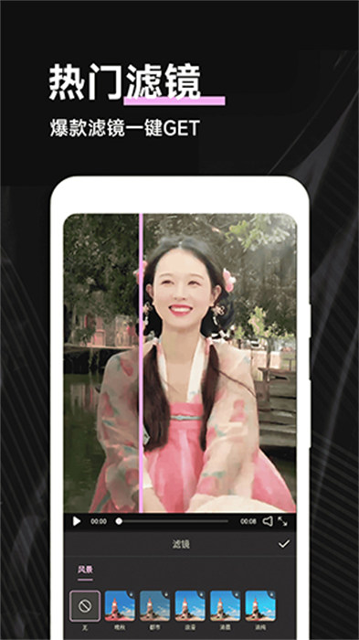 4、一次就能够拿到大量热门的滤镜特效,海量的模版素材让用户们有创意。