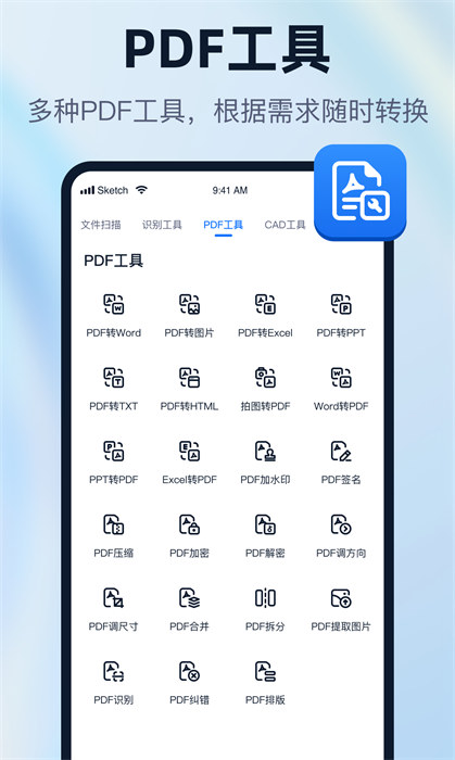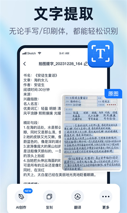 一键识别王app是一款优质的图片处理编辑软件,无需任何比较困难和繁琐的操作,大家都能快速上手使用,并且软件内的强大ocr识别工具让用户能看到更全面的效果,不仅如此,软件内还有翻译工具,如果有任何英文的文件都能通过扫描来实现效果,不仅如此,这里的所有素材都会同步到账号中,为了避免出现任何情况的数据丢失,软件也做好了全面的准备,日常在工作和生活中一定能够提高大家的效率。