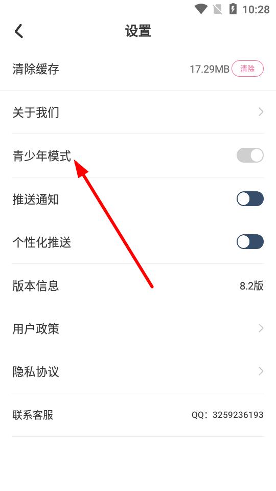 3、进入设置页面后,找到青少年模式选项并点击。