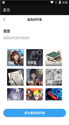 3、该平台如果想要申请创作者,在开启时通过注册登录后进入选择创作者;