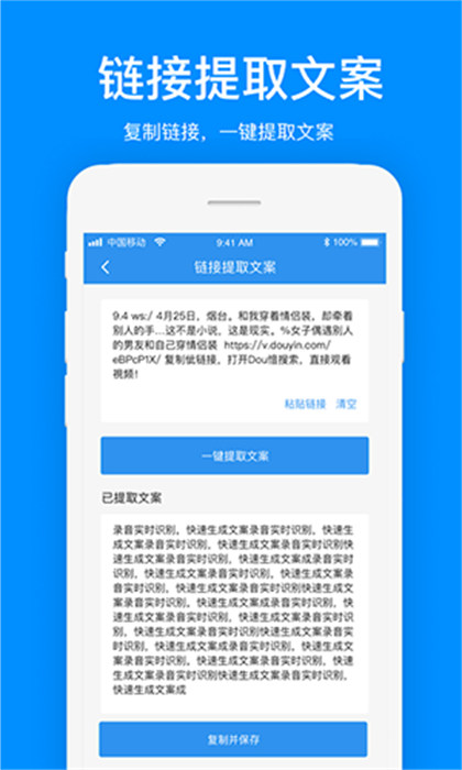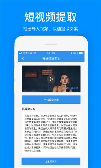 视频文案提取神器是一款连接网络的提取信息的应用软件,通过这款软件用户可以随时随地的进行提取自己想要提取的信息,提供了十分丰富的提取功能,用户可以随时轻松地进行信息提取,是一款广受用户们欢迎的十分好用的实用工具。