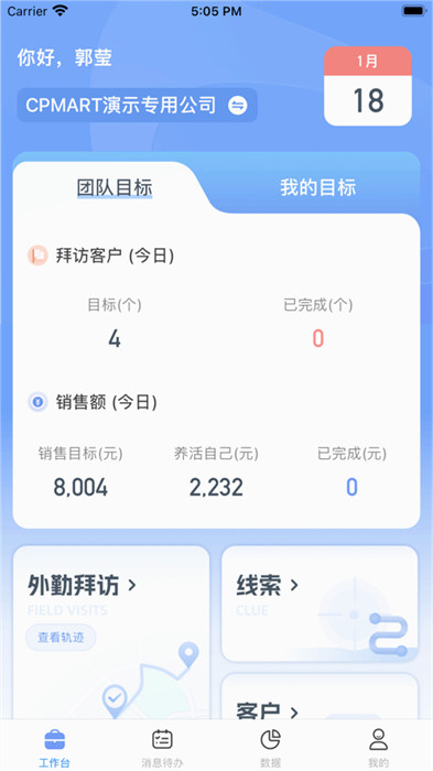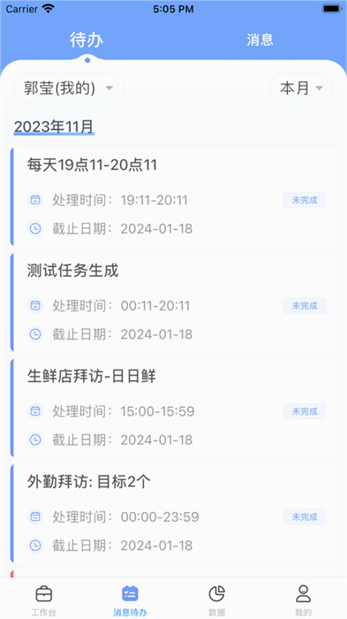 2、拥有工作台、消息待办和数据等等功能的板块,大大的提升了用户工作效率;