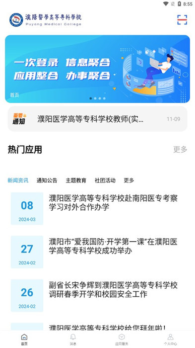 智慧濮医是一款十分好用的教育学习类软件,是一个专门为了用户进行使用服务的软件,为用户提供了许许多多丰富的实用功能,让用户可以随时满足自己的使用需求,濮阳市学高等专科学校校园服务的软件,发布校园的最新资讯和公告,更新十分的及时,提供了专业的校园服务内容,欢迎来下载。