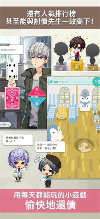 百万美金男孩是一款以恋爱为主题的经营游戏,玩家将需要和一些不同的男孩进行互动,并不断的熟悉这些男孩,这些男孩也会为玩家提供一些帮助,如帮助玩家打造出一个更加美好的咖啡店等。