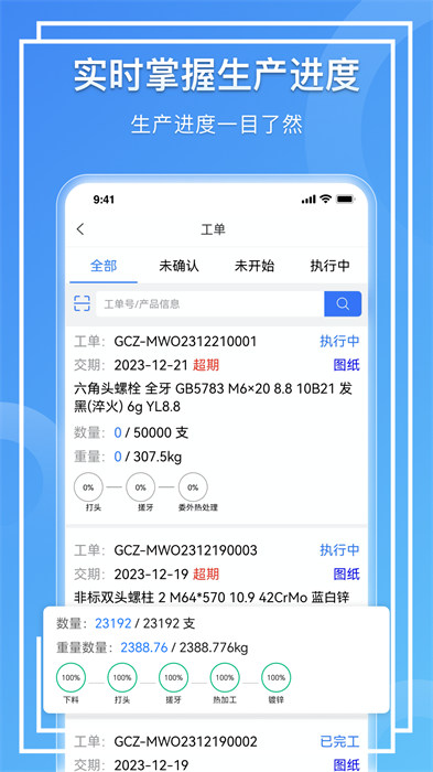 工云链是一款十分好用的商务办公类软件,是一个专门为了用户进行管理生产的软件,为用户提供了许许多多丰富的管理功能,让用户可以随时满足自己的管理需求,专注于工业零部件领域的数字化管理的系统,通过软件可以随时随地的查看库存,实时的盘点,一键查询到生产的具体进度。