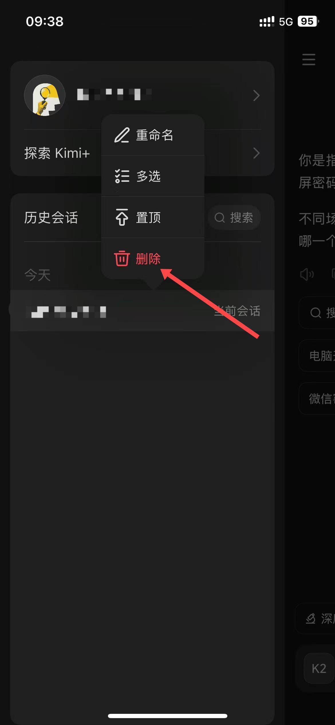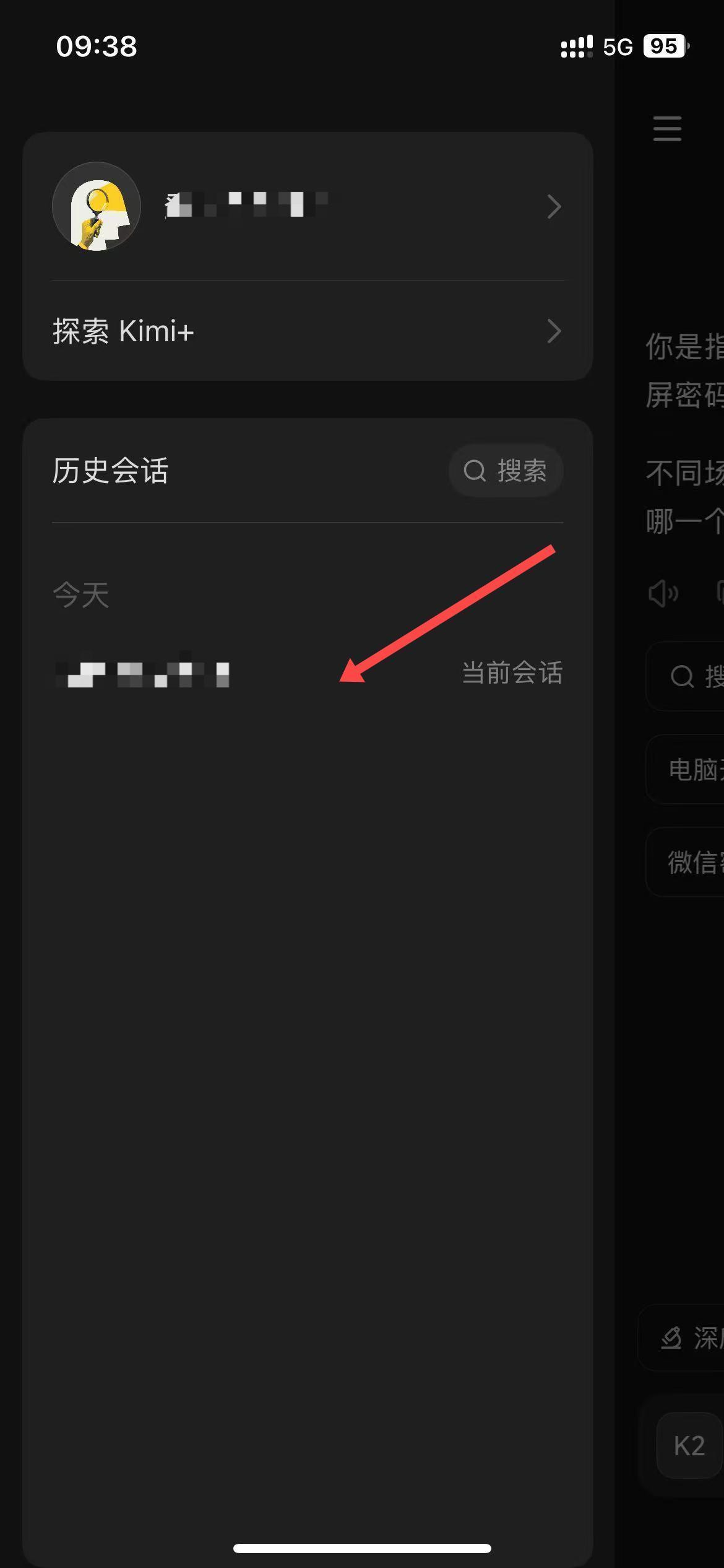 2、在侧边栏的历史会话区域,找到想要删除的历史记录,长按该记录。