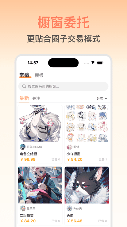 兽聚汇软件是一款可以为喜爱furry用户们进行绘画委托所打造的软件,利用该凭条可以找寻到超多不同绘画风格的太太们进行绘画接稿等服务,能轻松对于自己脑海中的oc人物设计实现不同的风格绘画出现,线上可以查看自己的委托信息并实现实时的追踪,不在遗漏委托的内容,同时还可以查看各种最新的福瑞设计,专属于furry爱好者们的专属平台,认识更多相同爱好的用户一起在线交流互动。