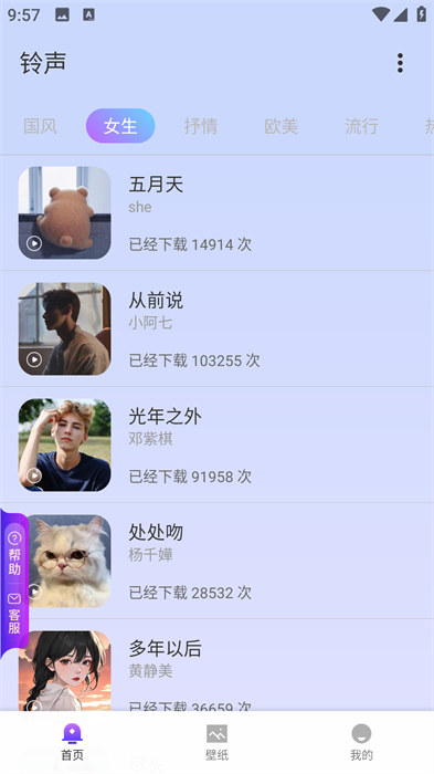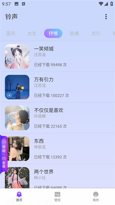 3、拥有十分丰富多样的铃声资源内容,包括了经典的音乐和自然的声音等类型;