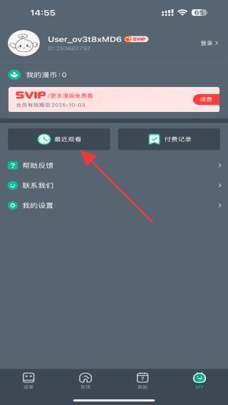 2、在个人中心页面,用户需点击最近观看的功能按钮。