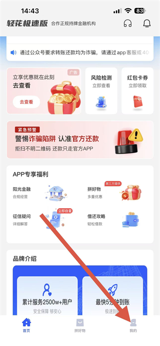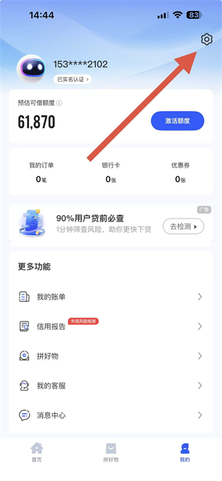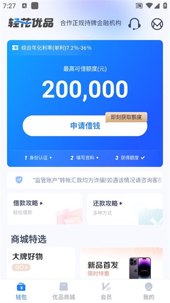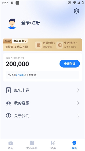 1、这是一个里面充满各种优惠购物服务的应用,同时在这里还可以得到借款的服务,当资金短缺的时候可以申请借钱,获得额度即可进行借款;