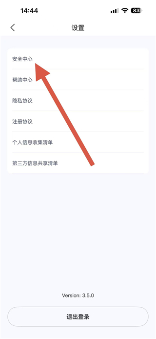 4、在安全中心页面里,点击注销账号选项,按照后续提示完成账号注销操作。
