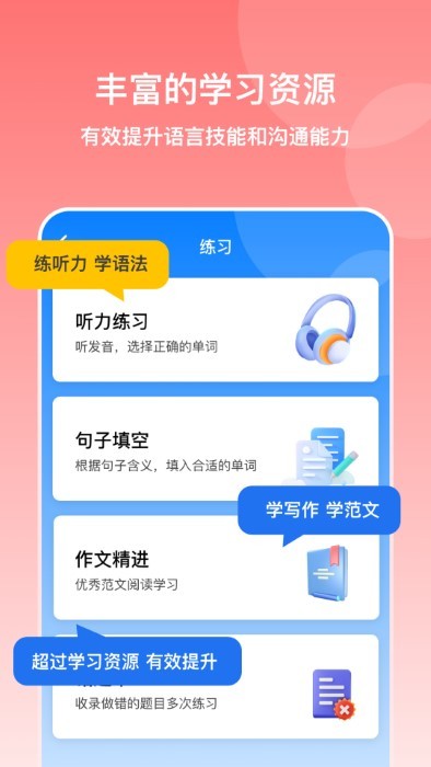 1、提供更加丰富多样、便捷化的语言学习,带来更加有趣的外语学习功能支持;