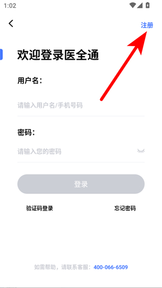2、在登录页面,点击右上角注册选项,进入注册页面。