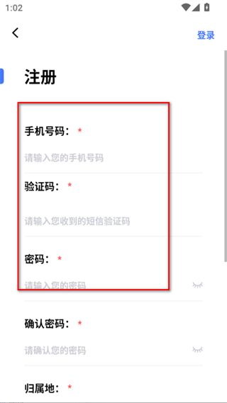 3、在注册页面,依次输入手机号码、验证码、密码等信息。