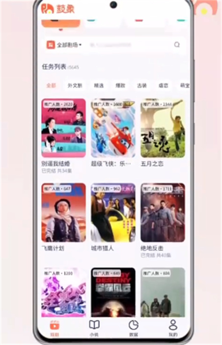 鼓象短剧app是一款非常实用的线上短剧推广软件,新手用户能够在线挑选自己喜欢的短剧并推广,其中给大家整理了海量的教程,以便让新手用户上手的更加高效,不仅如此,软件当中的很多任务每天都会刷新,需要定时领取并完成,才能满足大家日常的赚钱需求,同时软件内还有很多不同的短剧题材,可以根据当前网友日常的观看情况来寻找题材,需要精准的找到网络的热点题材,这样才能提高视频的曝光率,如果你也想要推广和观看短视频,快来小编这里下载吧!