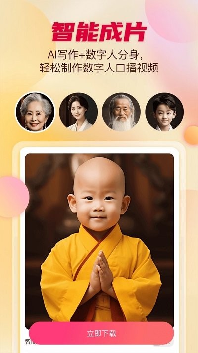 1、内置各种形象特色的虚拟主播数字人,帮助手机张片合成可对话的视频;