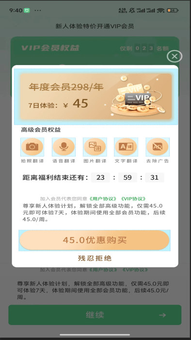 2、能够语音输入以及语音翻译的功能,提供了更加便捷的用户翻译使用的体验;