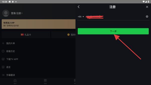 4、在注册的页面内,输入要注册的手机号,再点击下一步即可。