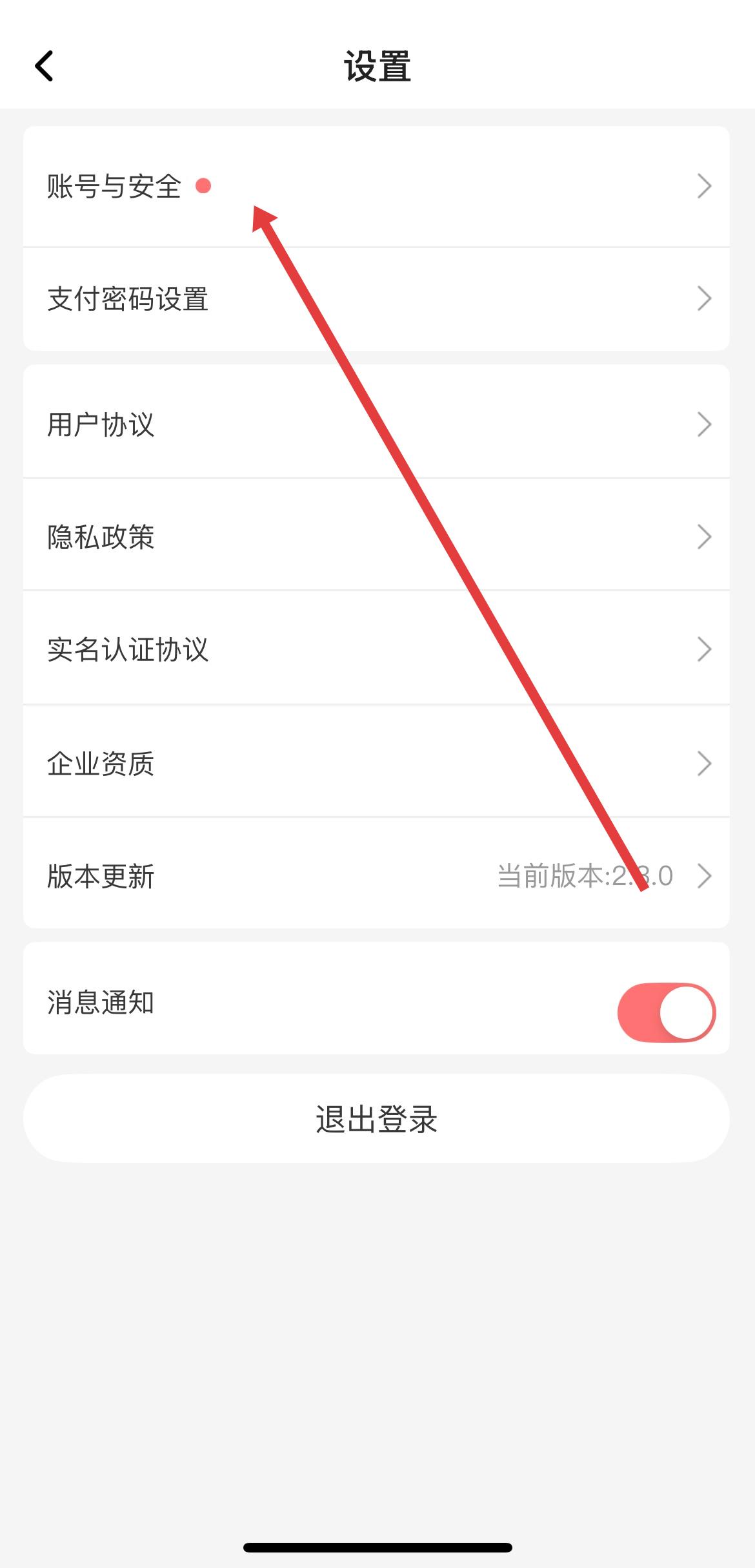 2、进入设置页面之后,点击第一个选项账号与安全,进入账号与安全页面。