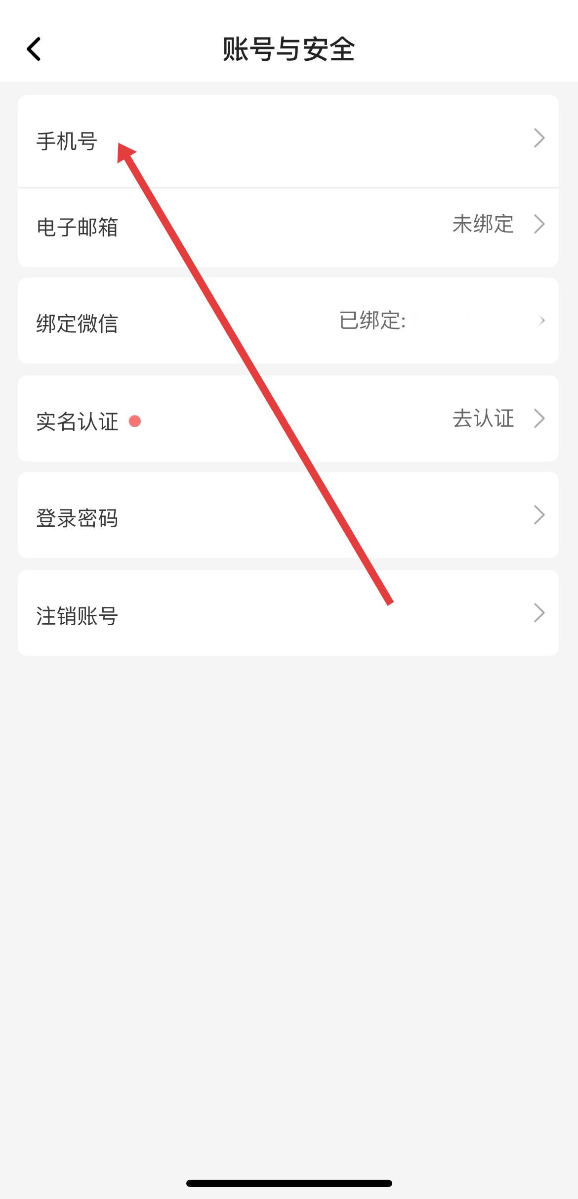 3、在账号与安全页,找到并点击手机号选项,进行更换手机号码的操作,按系统提示完成更换。