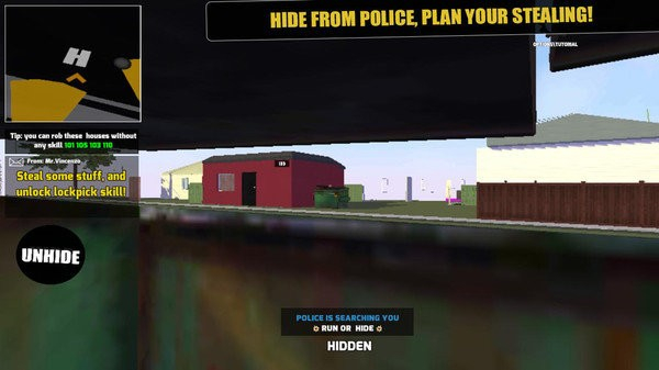 妙手神偷模拟器是一款具有冒险特色的动作类游戏,玩家需要在游戏中利用各种不同的工具来潜入到不同的NPC家中,并从他们的家中获取各种不同的珍贵物品,快来看看你的偷盗能力究竟如何吧!