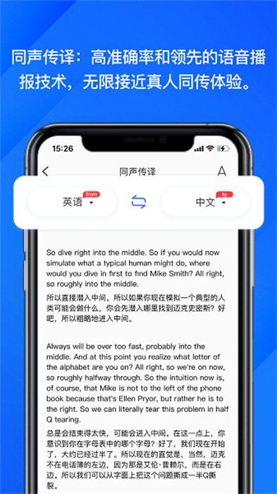 b、智能交流,软件内可以实现直接交流翻译,完全无需等待翻译的结果;