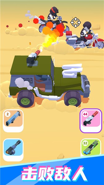 公路射击飙车是结合赛车和射击的闯关游戏,需要玩家驾驶赛车,运用不同的武器来击败对手,顺利的到达终点即可,获得大量的奖励,解锁新的赛车和武器来游玩,对战都是非常的激烈的,要尽情的展现自身的实力,快来体验下。