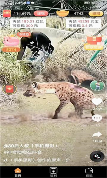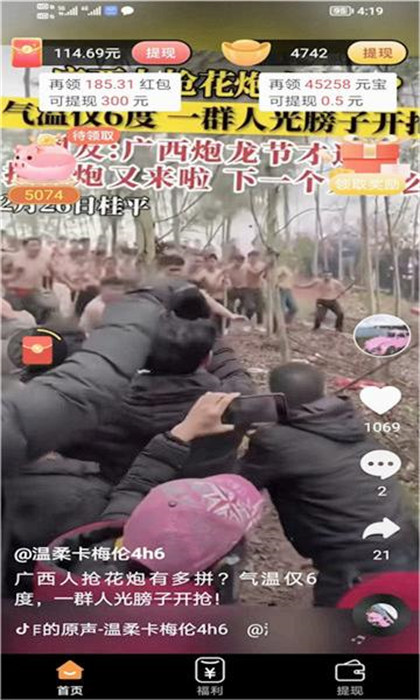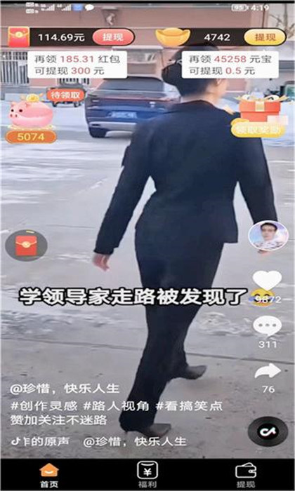 2、刷视频的同时还可以领取到红包,一边看视频的同时一边赚取到更多金额;