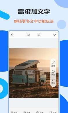 图片加水印文字软件是一款操作更加高效流畅的编辑工具,不论是视频还是图片,全部都能在线调整使用,同时软件这里还能添加上一些文字和相框,使整个画面看起来更清晰,不仅如此,每次调整完成的照片都会自动保存下来,这样完全不会出现数据丢失的情况,并且大家还能设置gif的动图,随时编辑图案和文字,创作更有趣的表情并分享给好友一起使用,给整个软件添加一些趣味。