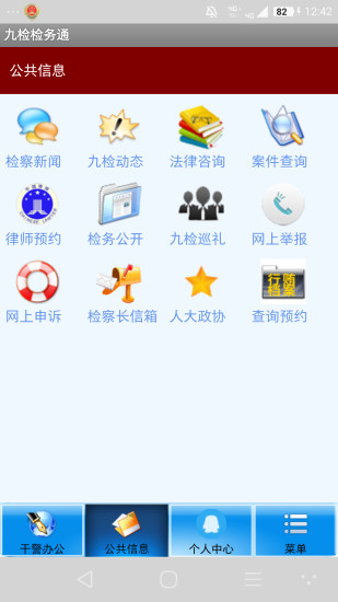 2.为市民提供了老百姓,提供了检察新闻,九检动态,监务大厅,预防犯罪,检察公开,投诉举报,法规查询等服务功能。