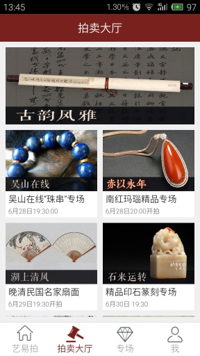 艺易拍是一款专门为艺术收藏用户设计的艺术电商平台,这里是艺术展示之地,这里是艺术拍卖平台,海量国内顶尖艺术品等你欣赏和购买,有需要的用户欢迎下载!