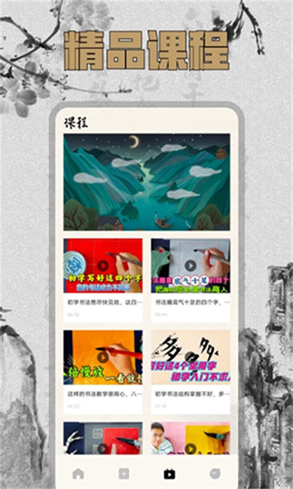 3、素材内容十分的丰富,随时进入到在线学习的模式,呈现了免费的书法的课堂;