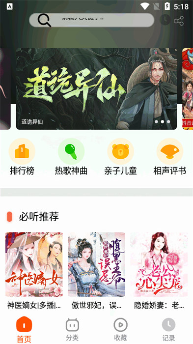 3、通过小说的分类或者是搜索的功能,可以快速的找到自己感兴趣有声读物;