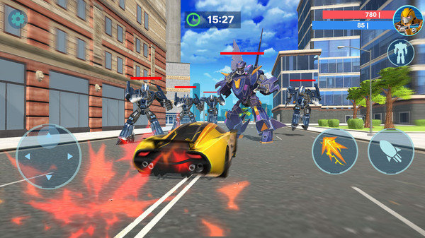 当看到变现金刚电影的时候你是否想变身成为其中的变形钢铁人?变形钢铁英雄这就是一款可以满足你愿望的体验游戏,在这里你可以变身成为各种形态的钢铁人,感受成为梦想中的人生愿望,在城市背景之中尽情的探索,追加坏人为整个正式的和平带来希望,感受与各种其他钢铁人发生战斗的场景,操控钢铁人的各种招式与敌人进入热血奋战的冒险之中,同时还可以变身成为一辆汽车穿越街头,或者变身飞行器飞跃天空等丰富的玩法等着你来探索。