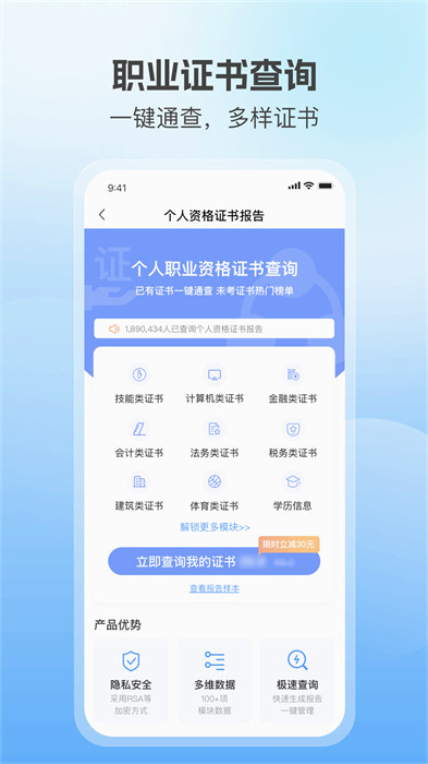 3、个人证书的报告一键在线获取快速的掌握到个人证书助力职场社交,非常实用;