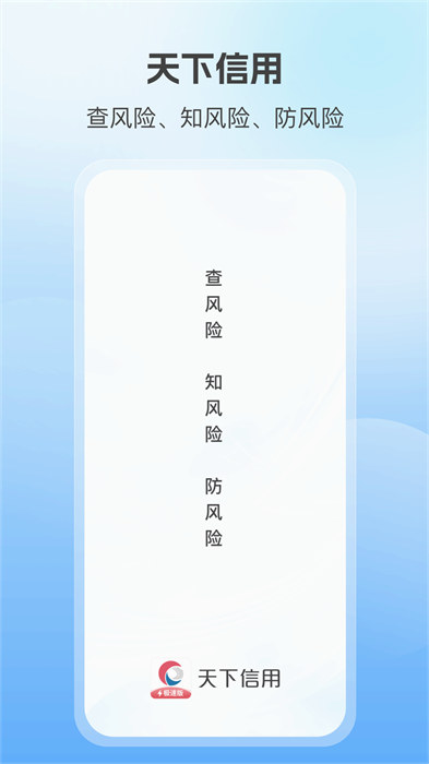 天下信用极速版是一款信用、证书和按键等查询的软件,支持信用风险的检测,获取到用户们个人风险的报告内容,让风险查询更加的快速而且更加的省心,随时了解到用户们自己个人信息的情况,有需要的用户们可以下载体验一下。